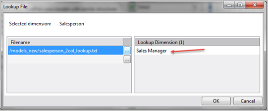 To add the sample lookup file, click L across from the Salesperson dimension to open the