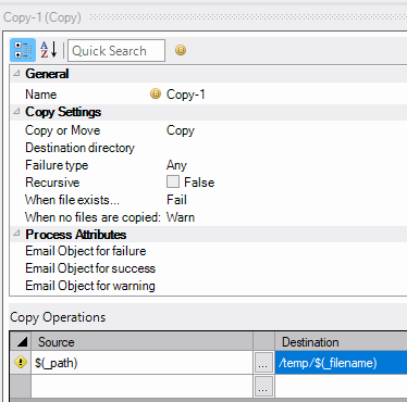 Source—/data/csv/test.csv and Destination—/temp/test.csv