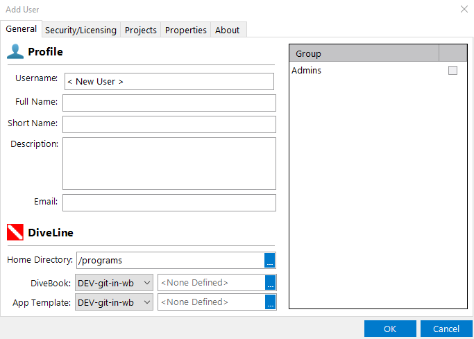 The Users tab displays a list of the current users on this DiveLine connection. You can manually resize most columns for readability. From this tab, you can review the following user information: