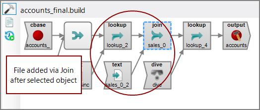 If you drag the file and drop it on a specific node, you will be given the choice of adding it as a Lookup or as a Join object.