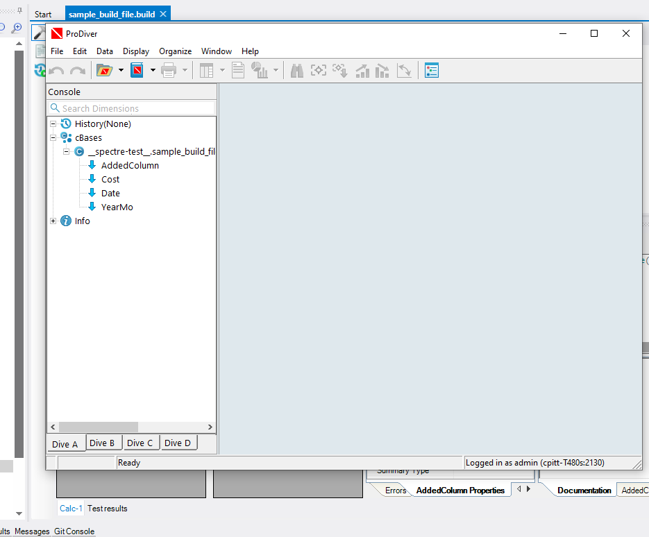 The object runs and builds a temporary cBase that opens in ProDiver where you can examine the data. You can also examine the log file in Workbench.